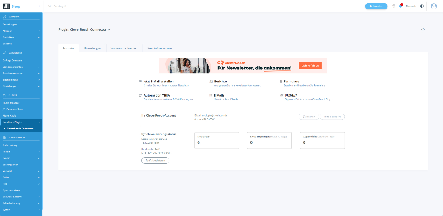 Richten Sie einmalig Ihre THEA für Warenkorbabbrecher ein – das Plugin macht den Rest.